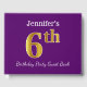 This guest book design features the ordinal number "6th" with a faux gold-like appearance. It also features a personalised name, and a purple coloured background. It could be used at a party for somebody celebrating their sixth birthday. [~Z0000057]