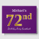 Purple, Faux Gold 72nd Birthday Party; Custom Name Guest Book