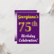 This birthday party invitation design features a message like "Georgiana’s 75th Birthday Celebration!", where the name can be customised, and where the number "75th" has a faux gold-like appearance. It also features a purple coloured background. The event details on the back can be personalised. It could be used to invite people to somebody’s seventy fifth birthday celebration or birthday party. [~Z0000121]