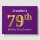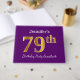 This guest book design features the ordinal number "79th" with a faux/imitation gold-like appearance. It also features a personalised name, and a purple coloured background. It could be used at a party for somebody celebrating their seventy ninth birthday. [~Z0000057]