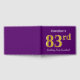This guest book design features the ordinal number "83rd" with a faux/imitation gold-like appearance. It also features a custom name, and a purple coloured background. It could be used at a party for somebody celebrating their eighty third birthday. [~Z0000057]