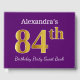 This guest book design features the ordinal number "84th" with a faux/imitation gold-like appearance. It also features a personalised name, and a purple coloured background. It could be used at a party for somebody celebrating their eighty fourth birthday. [~Z0000057]