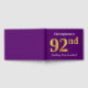 This guest book design features the ordinal number "92nd" with a faux/imitation gold-like appearance. It also features a personalised name, and a purple coloured background. It could be used at a party for somebody celebrating their ninety second birthday. [~Z0000057]