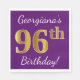 Purple, Faux Gold 96th Birthday + Custom Name Napkin