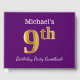 Purple, Faux Gold 9th Birthday Party + Custom Name Guest Book