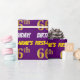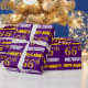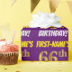 This wrapping paper design features a message like "FIRST-NAME’S 66th BIRTHDAY!", with the "66th" having a faux/imitation gold-like colour appearance, and with the name and "BIRTHDAY" in a fun, bold font. The name can be personalised, and the background is coloured purple. Wrapping paper like this could perhaps be used when wrapping birthday gifts being given to somebody in celebration of their sixty sixth birthday. [~Z0000206]