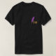 The t-shirt is black and features a design on the left chest area. The design includes a purple feather with a yellow quill, positioned vertically. To the right of the feather, the word "STORY" is written in a stylised yellow font.