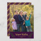 Vertical Holiday Photo Card featuring the words "Warm Wishes" in a stylish script in faux gold surrounded by festive leaves and berries against a purple background. Card includes a purple and faux gold stripes backside. Check out other holiday items here https://www.zazzle.com/collections/holiday_christmas_new_year_cards-119015800351034065?rf=238364477188679314