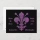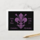 An elegant royal gothic aristocratic grungy purple fleur de lis on black on a square save the date postcard. This item may print darker than shown here. Add your names and wedding date to it. Change or remove the text on the back as well.
