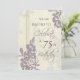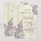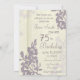 75th birthday party invitation cards in classic beige and subtle purple. Feminine and elegant with stylish floral pattern, fully customisable with your party details.