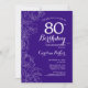 Purple Floral 80th Birthday Party Invitation. Minimalist modern design featuring botanical outline drawings accents and typography script font. Simple trendy invite card perfect for a stylish female bday celebration. Can be customized to any age. Printed Zazzle invitations or instant download digital printable template.