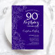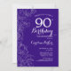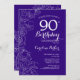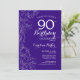 Purple Floral 90th Birthday Party Invitation. Minimalist modern design featuring botanical outline drawings accents and typography script font. Simple trendy invite card perfect for a stylish female bday celebration. Can be customized to any age. Printed Zazzle invitations or instant download digital printable template.