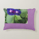 Image on the rectangular, 16" x 12", custom brushed, Polyester accent pillow is of twin pink-purple Morning Glory wildflowers amidst a sea of greenery.