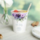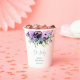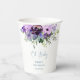 Oh Baby Purple floral baby shower Paper Cups with navy blue text and watercolour flowers