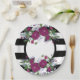 Purple Floral Black And White Stripes Flowers Paper Plate
