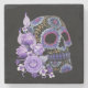 Purple Floral Black Sugar Skull Day Of The Dead Stone Coaster