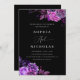Purple Floral Black Wedding | Photo & QR Code Invitation