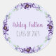 purple floral border with some rustic feel - class of 2023 - graduation round sticker . Personalise it now before submitting your order .
