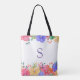 Purple Floral Bridesmaid Name and Initial Tote Bag