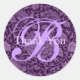 Purple Floral Brocade Monogram Thank You Classic Round Sticker