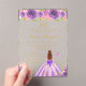 Purple Floral Brown Hair Princess Birthday Party Acrylic Invitations