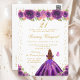 Purple Floral Brown Hair Princess Birthday Party Postcard