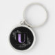 Purple Floral Butterfly Custom Monogram - Letter U Key Ring