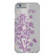 Stylised purple flowers, leaves and butterflies on a silver gradient background iPhone 6 case