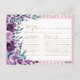 Purple Floral Champagne Gold & Stripes Confetti Watercolor Floral Wedding Recipe Card - With trendy brush script font! ~ Check my shop to see the entire wedding suite for this design!