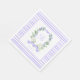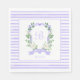 These adorable girl baby shower, sprinkle or sip and see luncheon napkins would be perfect for celebrating your sweet baby. They have the party date below a purple watercolor crest with her first initial surrounded by greenery and roses, your bundle of joy's first name, and a coordinating purple watercolor striped edge. They're unique and precious just like your baby.
