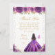 This elegant and glamorous birthday thank you card features a beautiful princess with dark hair and dark skin in a dark purple ball gown. The text combines handwritten script and modern sans serif fonts for a classy and sophisticated look. The floral arrangements, butterflies and gold confetti create the perfect blend of rustic and chic.