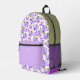 Purple Floral Garden Personalised Name Initial Printed Backpack