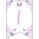 Sweet butterfly themed happy birthday banner featuring two lovely watercolor light purple floral arrangements and faux purple glitter butterfly. This sweet butterflies birthday banner is a cute addition for your little girls butterfly themed first birthday party.