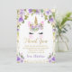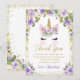 Purple Floral Gold Unicorn Birthday Thank You Card