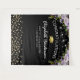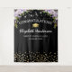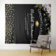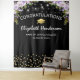 Elegant graduation photo booth backdrop featuring a trendy black background, purple watercolor florals, a graduate cap, gold glitter, and a congratulations template that is easy to personalise.