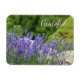 This pretty magnet features purple flowers in a rock garden with a message of gratitude.
