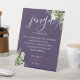 Purple Floral Greenery Jenga Wedding Guestbook Pedestal Sign