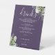 Purple Floral Greenery Wedding Drinks Menu Pedestal Sign