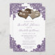 Purple Floral Lace Burlap Hearts Bridal Shower Invitation