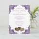 Purple Floral Lace Burlap Hearts Bridal Shower Invitation