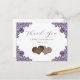 Create a beautiful purple wedding thank you postcard featuring elegant floral lace and two burlap hearts. Matching items available.