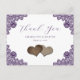 Purple Floral Lace Burlap Hearts Wedding Thank You Postcard