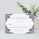 Purple Floral Lace Rustic Burlap Hearts Wedding RSVP Card