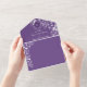 Celebrate your day with this elegant purple floral all-in-one wedding invitation featuring your photo, a matching detachable menu card, and an eco-friendly envelope-style design.