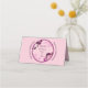 Elegant wedding place card featuring a circular magenta ring adorned with delicate pink flower clusters. The design showcases white and magenta peonies with lush dark-green leaves in the upper-left corner, complemented by cherry blossom branches in the background. Perfect for adding a touch of romance and sophistication to your special day.