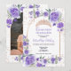 A pretty and elegant chic modern twist to the traditional Quinceañera with a rose gold glitter princess tiara crown, featuring a hand painted pretty floral and botanical purple wreath bouquet and lavender blooms with rose gold glitter confetti and a modern glitter arch shape, with an elegant script typography Quinceañera birthday. Add your photo at the back. perfect Mis Quince birthday party with a rose gold princess tiara crown.