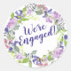 Purple Floral Wedding Engagement We're Engaged Classic Round Sticker