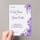 Celebrate the wedding with this elegant purple floral invitation! Featuring delicate purple flowers on a soft white background, this design exudes sophistication and romance. The stylish script font highlights key details, making it a perfect choice for a timeless and elegant wedding celebration. Fully customisable to match your event details, this invitation sets the perfect tone for a memorable and beautiful day.