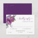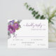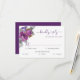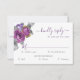Wedding RSVP card with editable meal options and decorated with a bouquet of purple flowers. This watercolor floral and foliage design features handwritten script typography, purple and gold confetti dots and, buds and blooms with grey green leaves and foliage. Please browse my store for alternative response card, online rsvp and matching items in the Plush Purple Floral collection.