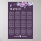 An elegant purple floral wedding seating chart poster featuring soft watercolor flowers in lavender, blush, and white, accented with a delicate butterfly for a romantic finishing touch. The rich plum background and floral top border create a refined and stylish display, perfect for guiding guests to their tables at your wedding reception. A beautiful choice for couples creating a coordinated floral wedding stationery and signage suite.